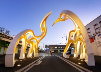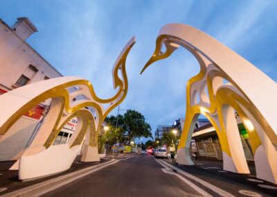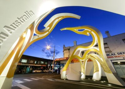 As part of the FPOV team, I contributed to the lighting design for the Little Saigon Welcome Arch, an iconic structure celebrating Vietnamese culture and heritage in Footscray. Our lighting design highlighted architectural elements inspired by traditional Vietnamese symbols—such as cranes, the turtle shell, and bronze drum motifs—to honor the Vietnamese community’s success and history, creating a welcoming and meaningful monument for all visitors.